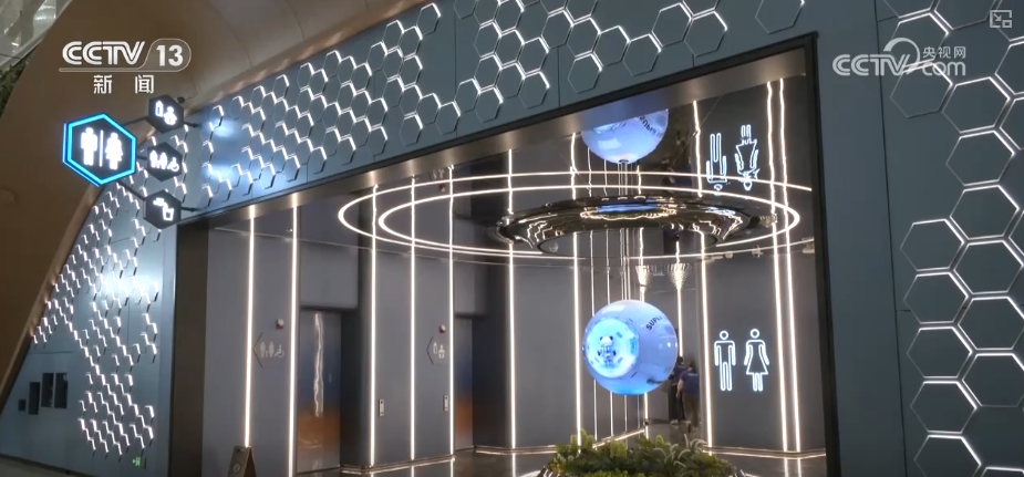 航站楼的“智慧”之处,不仅在于技术的高效,更在于1:1.98卫生间比例这般对人细致入微的关怀。航站楼公共区域的卫生间门口都设置了智慧卫生间显示屏,可实时展示当前卫生间的使用人数、空余厕位、空气质量等,同时还提示旅客最近的其他卫生间路径指引和厕位空余情况。