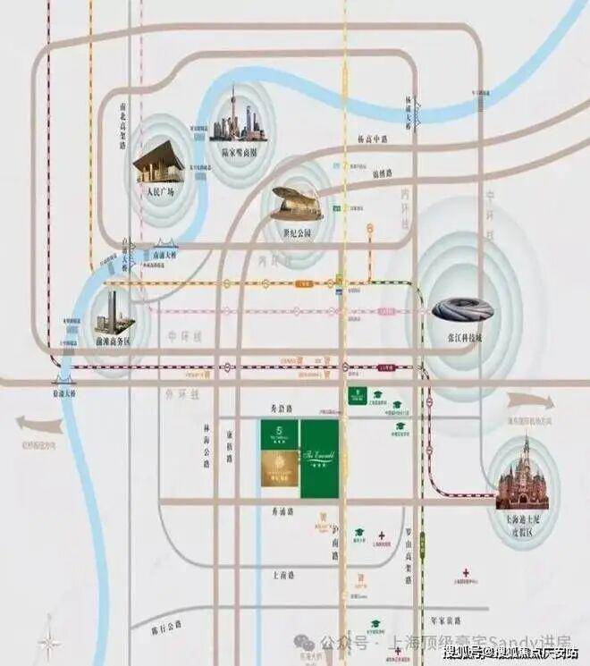 康桥东接迪士尼国际旅游度假区,北接联洋世纪公园,距离陆家嘴约12公里。并且凭借区域内的中环线号线等道路交互与通行设施。把康桥和前滩、张江科学城、迪土尼、浦东国际空港、外高桥自由贸易区等五大引擎连成一条黄金轴线。